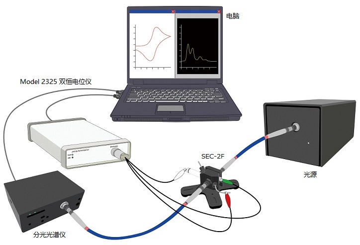 - 光线可通过连接在光源上的光纤照射到工作电极上